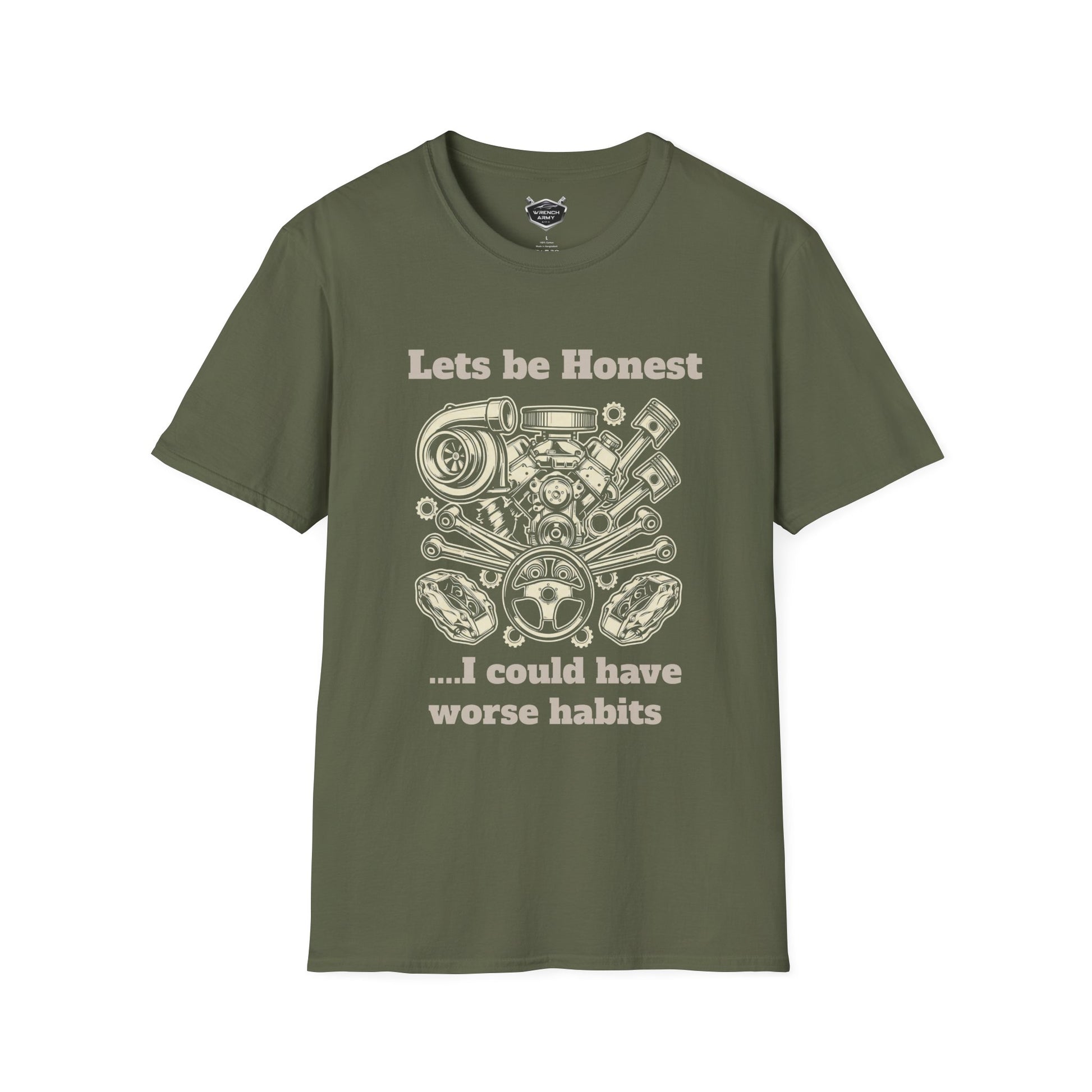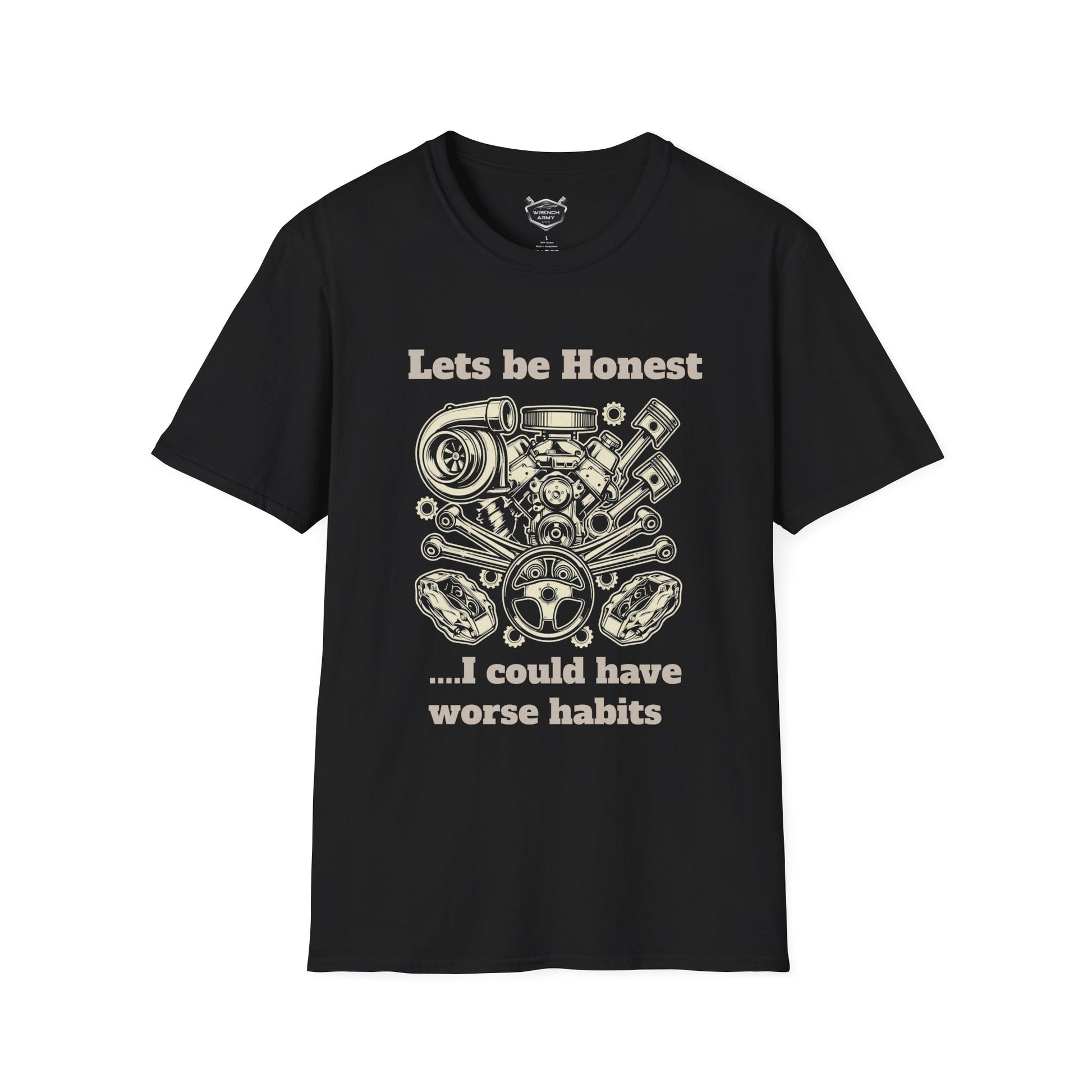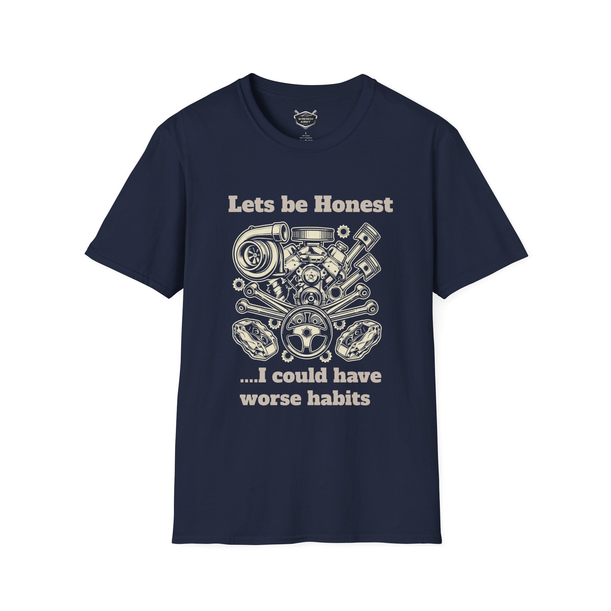 This shirt features a detailed, vintage-style engine illustration for the guys who would rather hear a V8 rumble than a quiet house. It’s a wry nod to the hobby that keeps us sane, even when it’s making us broke.